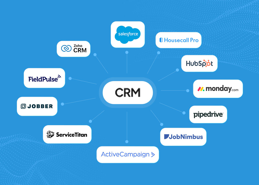 - Salesforce, HubSpot, Pipedrive, ServiceTitan, JobNimbus, Jobber, Housecall Pro, and 15+ more